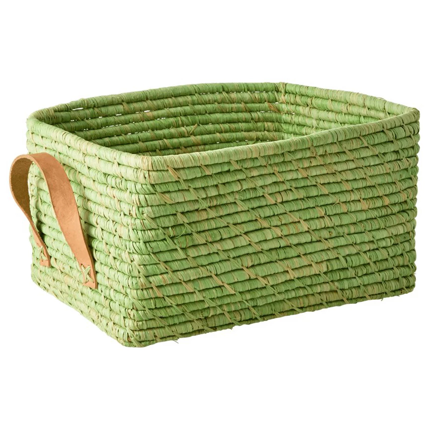 Rice – Raffia Rectangular Basket with Leather Handles – Boîte de rangement